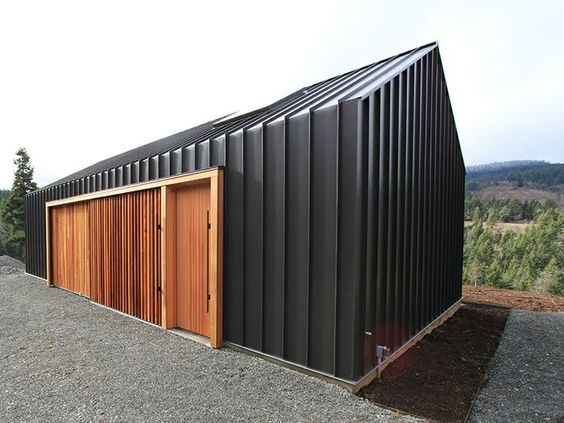 The most prominent feature of a Modern Farmhouse design is probably a gable roof, with a rather steep pitch. This derives from the more general Farmhouse style. If you think about it, back when farmhouses were built by, and for, farmers, this roof style was attractive, as it was simple to construct. And in areas with cold winters the steep roof also helps shed snow. But I would say that what makes a farmhouse truly “modern” is a complete lack of roof overhangs (no eaves in other words). A metal roof is also something that lends to the Modern Farmhouse design aesthetic. In the photo above the metal roofing material wraps right down off the roof and onto the sides of the home (I love that look). In this particular instance the material appears to be Corten steel. In case you’re not familiar with Corten, it is a specific alloy of steel, common in industry, where when it rusts, the layer of rust actually acts as a barrier to further oxidation. So you can use the material, leave it exposed (no paint), and over time it develops what many consider to be a beautiful orange-red color, which requires no maintenance. We clad the garage of one of our homes with this material and it turned out real nice.