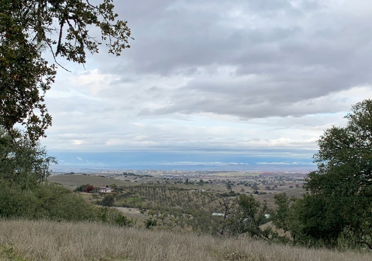 Being a city-slicker, I was initially unaware that grape vines lost their leaves in winter. Some Oak trees do also. Where I grew up in Marin County the local Oak trees kept their leaves all year round. But here in Paso Robles, there is one type of Oak tree that does loose all its leaves in winter. The first time Dominique and I came up to visit Paso Robles, scouting for a place to live, it was January. The first vineyard we came upon driving up the region was totally bare, then the second one was bare. I told Dominique, “Why have folks let all these vineyards die? And what is up with all these dead Oak trees? Maybe the have some kind of disease?” I soon learned of my mistake from our agent Wayne Lewis. In Spring everything is as green as can be.