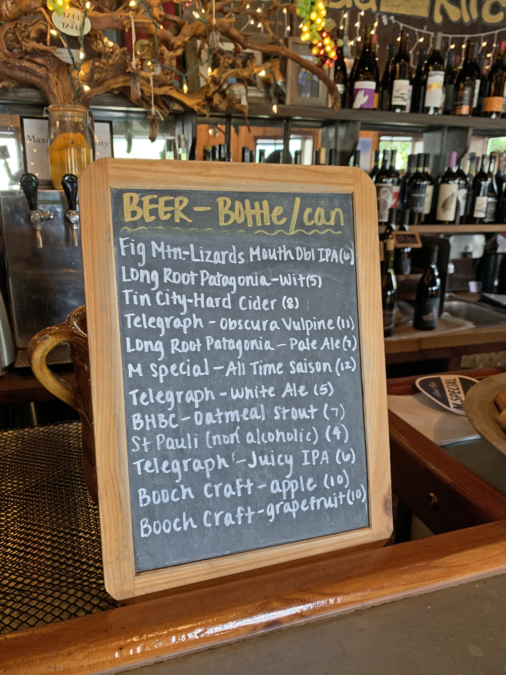 They have a lot of outdoor seating, both on the front porch and around the side. We debated sitting outside, but since we love bars, we bellied up.
